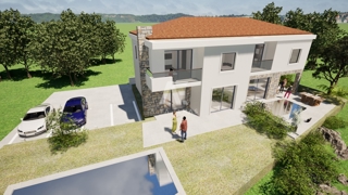 Malinska, dvojček s skupno neto površino 132,73 m² z bazenom, zasnovan kot sodoben družinski dom, ki...