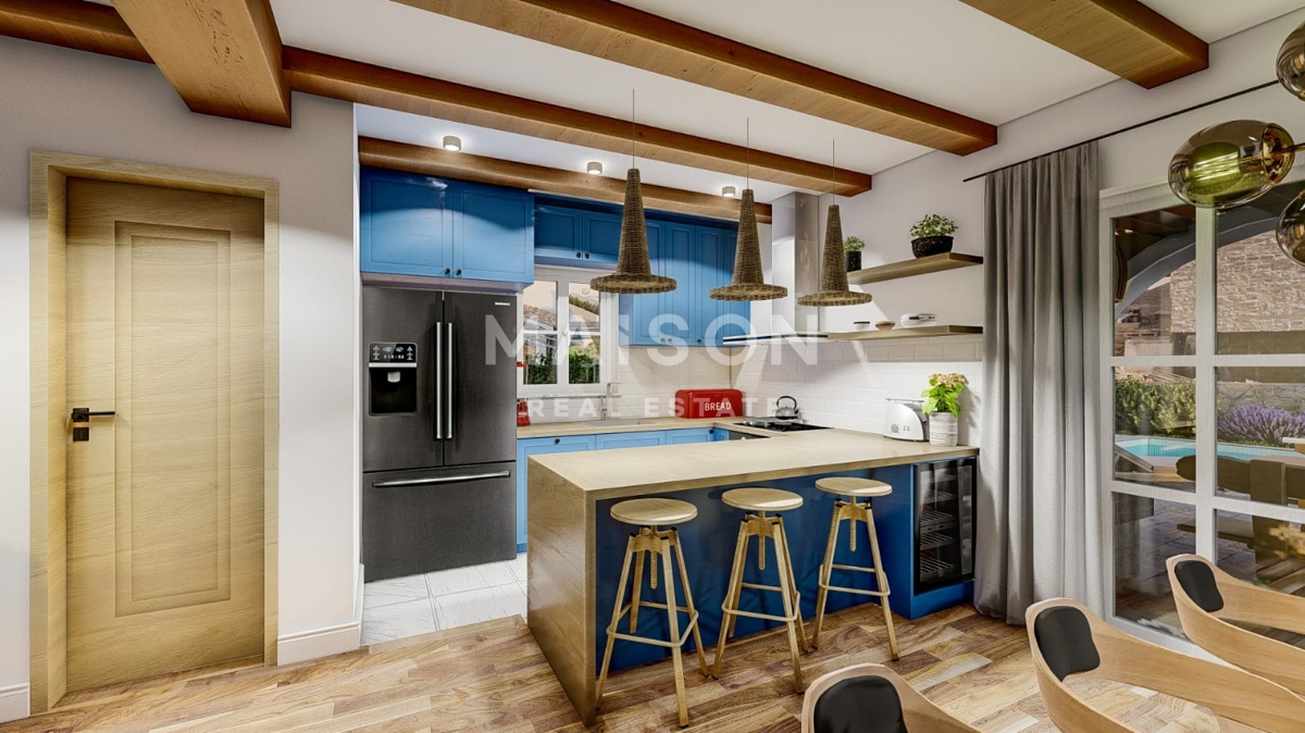 Mediteranska vila z bazenom pri Krku – pogled na morje